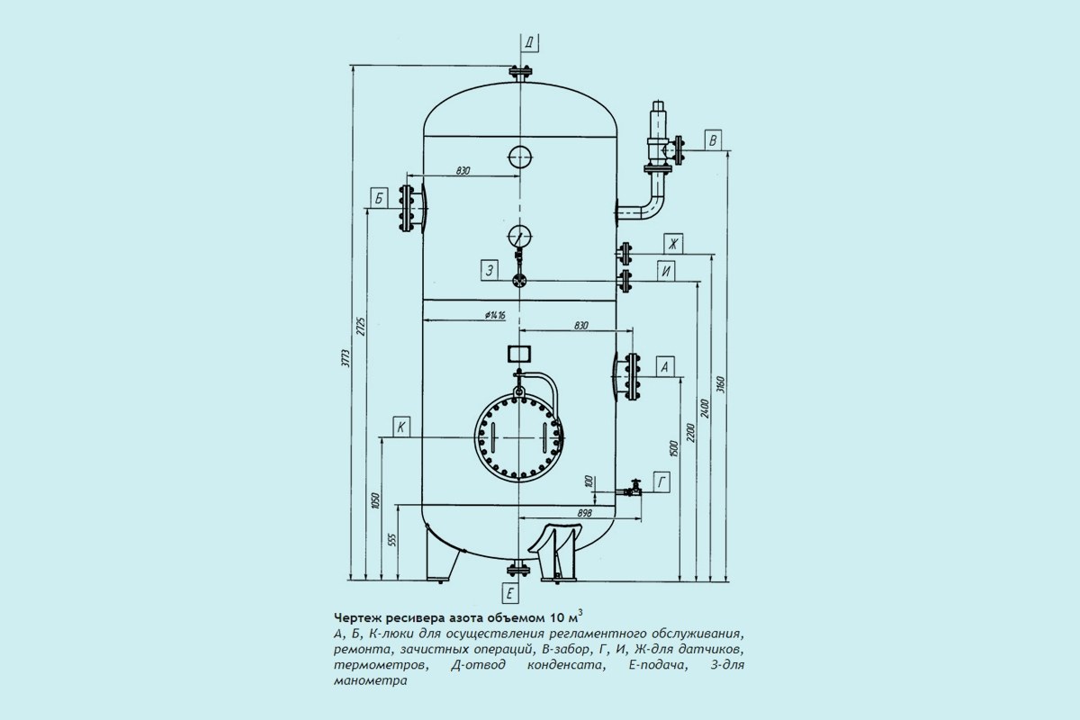 Воздухосборник-ресивер для хранения азота производится в соответствии с требованиями следующих стандартов: ГОСТ 9.307-89, ГОСТ 9.302-88, ГОСТ 9.308-85, ГОСТ 9.301-86, ГОСТ 9.306-85, ГОСТ Р 53295-2006, СП 28.13330.2012.